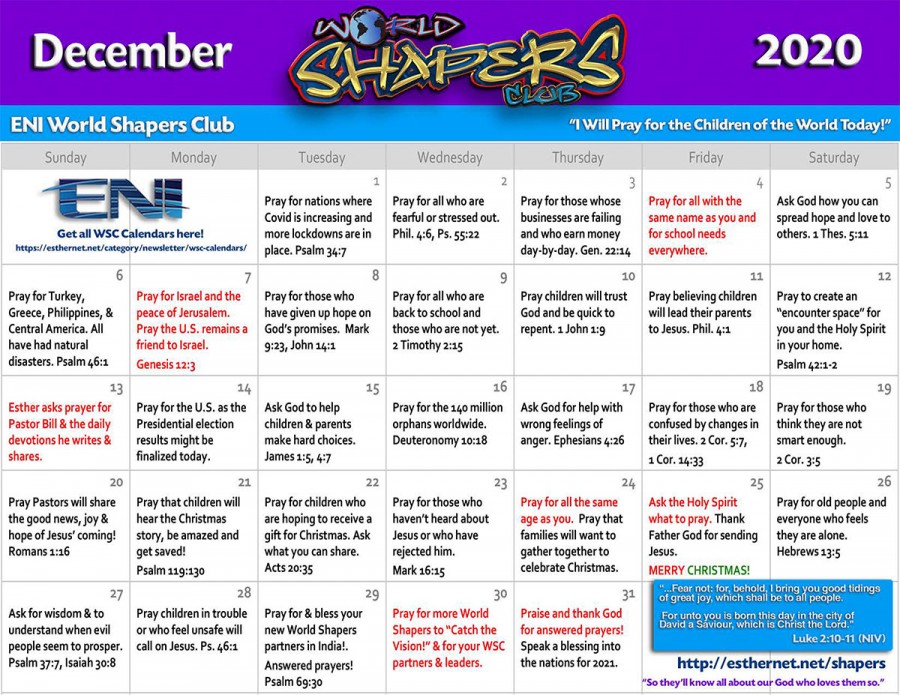 Prayer Calendar December 2020
